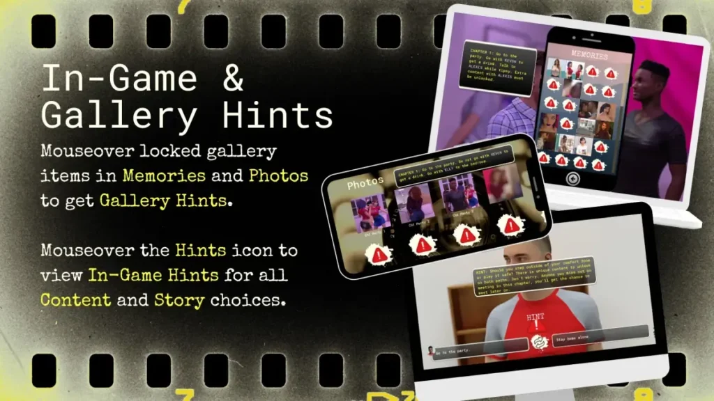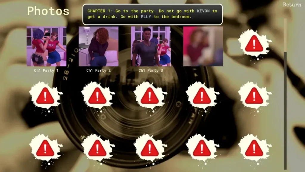 | Taking a Shot | Take all three photo opportunities at the first party (Kevon + ladies). | Access to early group social dynamics and related content. |