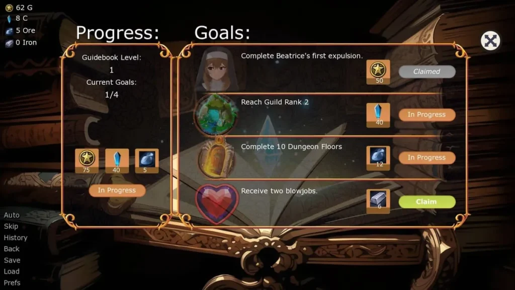 | Futanari-Sama’s Favor | 20 | 5 Hours | Successfully complete all her optional “errand” minigames |